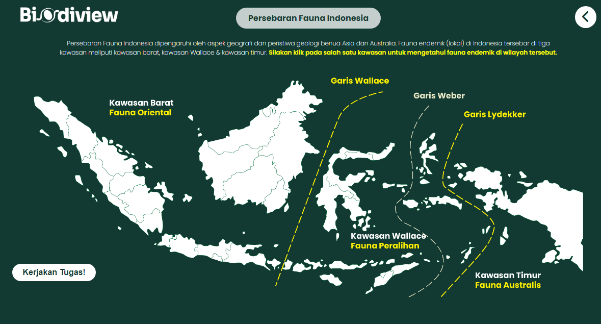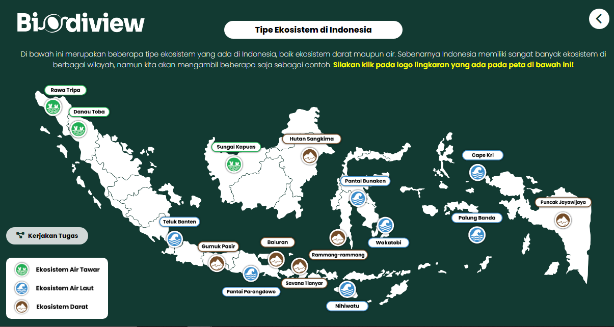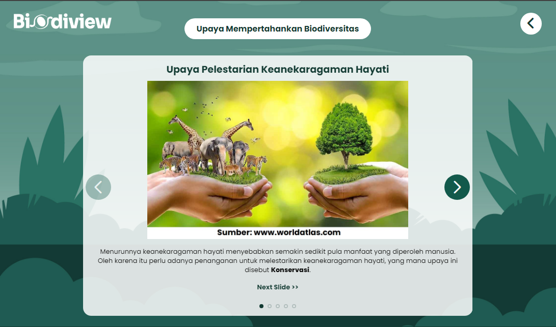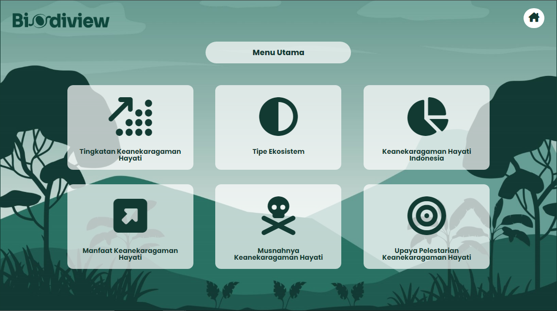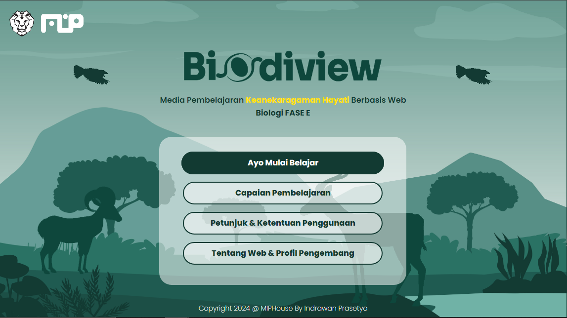 Media pembelajaran biologi berbasis web untuk siswa SMA/MA kelas X (Fase E), pada materi keanekaragaman hayati meliputi tingkatan keanekaragaman hayati, tipe ekosistem, keanekaragaman hayati Indonesia, manfaat keanekaragaman hayati, hilangnya keanekaragaman hayati serta upaya melestarikan keanekaragaman hayati. Biodiview merupakan media pembelajaran biologi materi Keanekaragaman hayati, berbasis website. Materi yang disajikan dalam bentuk Tour Map, memberikan pengalaman bagi siswa untuk memahami berbagai jenis keanekaragaman di Indonesia secara tidak langsung. Menggunakan coordinate point yang bersifat clickable, Biodiview menayangkan berbagai gambar flora & fauna yang tersebar di seluruh wilayah Indonesia.